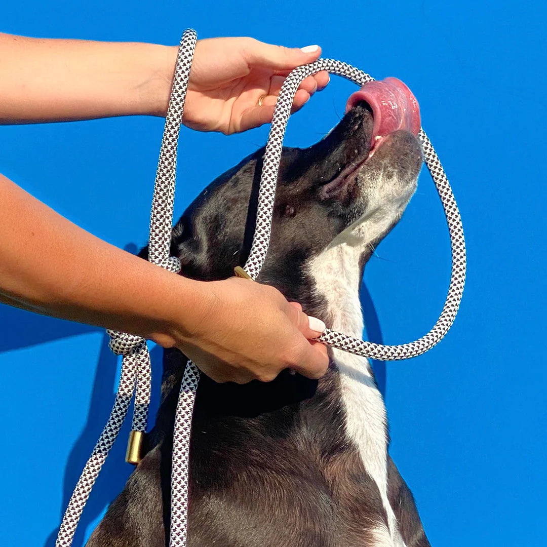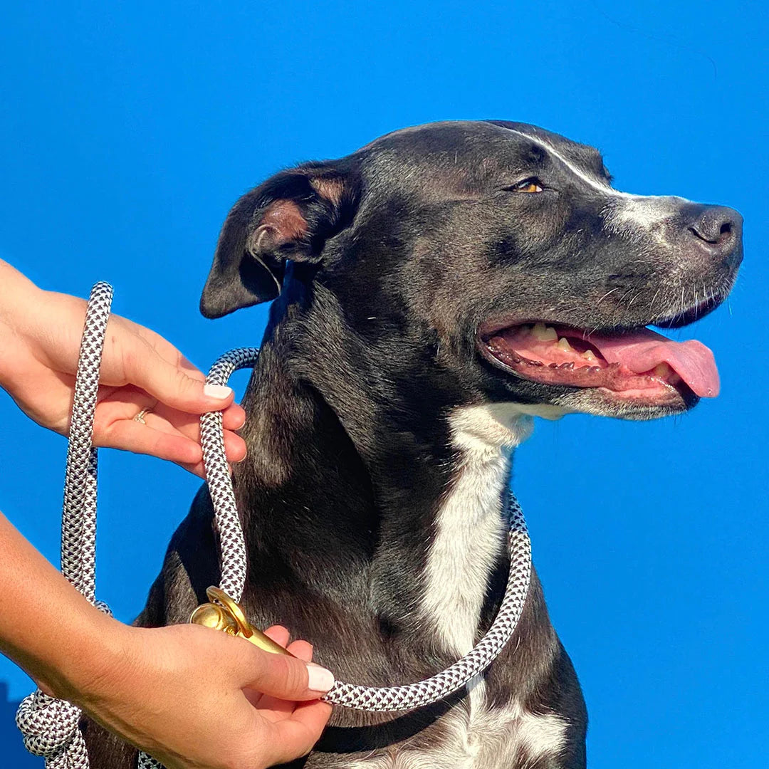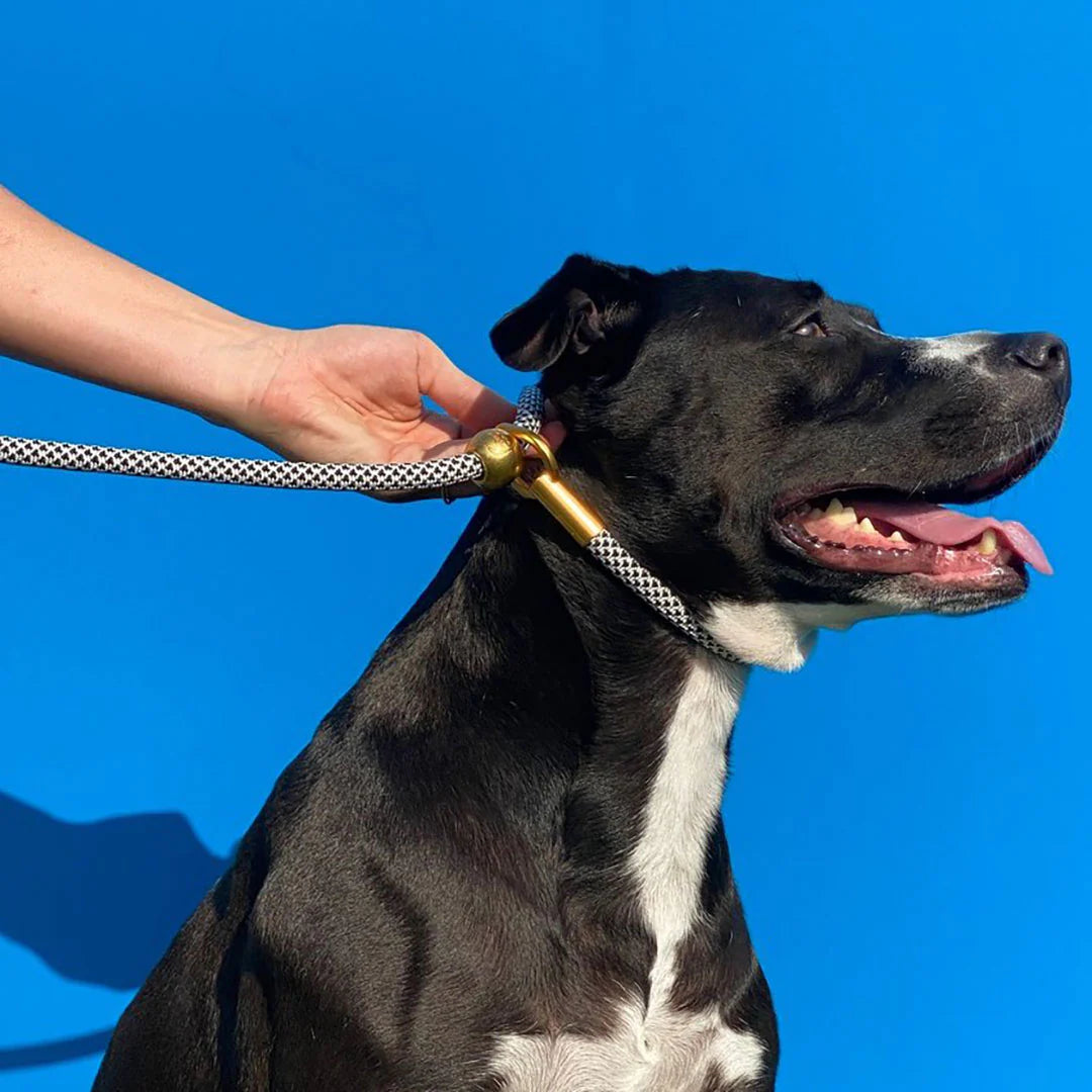 Slide the spring-loaded metal cord lock to tighten the collar section of the rope high on your dog's neck, right under the jawline. When fit properly, the rope will have a smooth transition through the o-ring which will allow you to effectively communicate with your dog and guide them when they need it most.